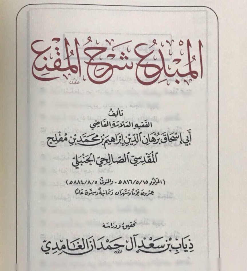 A. al-Mubdi’ المُبْدِع شرح المقنع by Burhān ad-Din Ibrahim b. Muhammad b. Muflih (884h) رحمه الله.