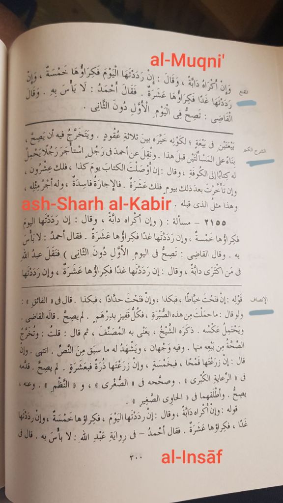 This magnificent book (1) takes each issue mentioned in al-Muqni’ and relays all of the views within the Madhhab الخلاف النازل. It (2) also indicates the selected view by the majority, (3) highlights the مفردات, and much more. This book truly deserves a post on its own (إن شاء الله in the future).